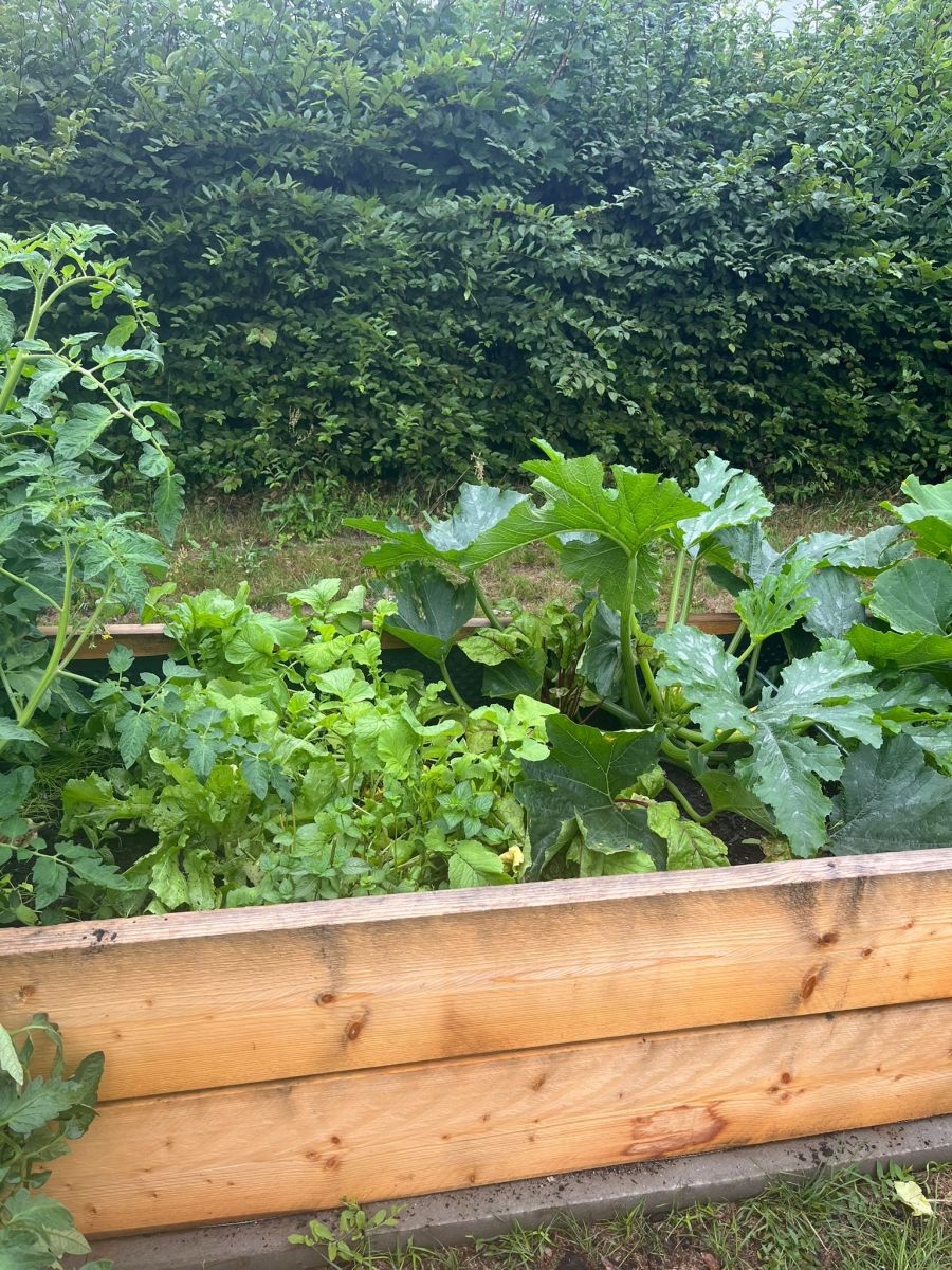 Pünktlich zum Schuljahresende im Juli konnten Schülerinnen und Schüler die ersten selbst gezogenen Zucchinis, Rote Beete, Salat und Minze ernten.